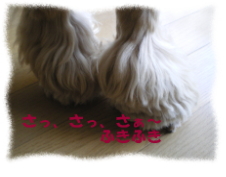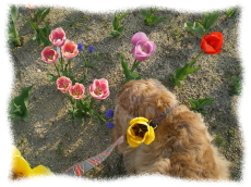 これぞアロマセラピーです!春先はあちらこ ちらで花の香りをクンクン。春を堪能していま す。 この時季のお散歩は、帰ろうよ〜!というの が申しわけないのです。 |