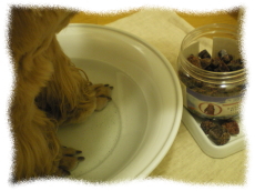 基本的にドッグフードはドライのカリカリタイプを与えています。原材料の信頼性が高いこと、 ちゃんとした栄養管理ができることがブランド選択の大切なところです。 ドッグフードの量を少し減らして、トッピングをしてあげると「なんちゃって手作りごはん」に!? よく使う食材の納豆は「こはる」の大好物。大豆は理想的なアミノ酸バランスの食材ですが、 犬には消化効率がわるいのです。納豆は蒸して発酵させてあるので消化吸収が良いようで す。プラスは生の野菜。酵素がこわされていません。つまりローフードをプラスするということ。 もう一つは、発芽玄米。玄米の時より栄養価も高まり、吸収されやすくなります。新陳代謝が まり、ミネラルバランスも良く、完全食といわれますが、ワンコにもあてはまるようです。 愛情ある手づくり食がモチロン良いのですが、大きな震災を体験して、愛犬のご飯は保存と いう観点からもドライフードも多めに備蓄しています。いざ!という時に愛犬を守れるのは 私ですから。 |