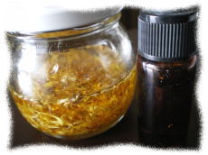 たれ耳の宿命。耳の酵母菌の繁殖、ムレムレによるせつないくらいの痒さ。耳のお手入れは欠かせません。ハーブのカレンデュラを浸けて、成分を浸出させ濾しとったオイルに、抗菌・抗炎症効果のある精油をin。イヤークリーナーのできあがり! 耳孔を傷つけないようにコットンでやさしく。 |