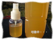 肺に吸い込んだ放射性物質を排出すると いう、発芽玄米の浸け水を培養した乳酸 菌。お散歩あとに鼻にシュッシュッ。 |