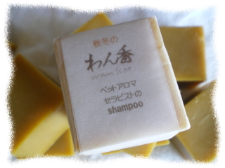 秋〜冬のわん香 *10月〜3月の限定品! お部屋でまったり、ほっこりと夜長を楽しむ季節の到来です。 どんどん空気が乾燥するこの時季、静電気が発生する季節でもあり、家の中の犬 たちはホコリを吸着し意外と汚れているものです。しっとり保湿は必須ですね。 寒い冬に向けて、お散歩不足になりがちな犬たちに。シャンプーしながら血流を促 し、新陳代謝を高めてくれるレシピとなっています。 また、皮膚や被毛に潤いを与え、乾燥による「かゆかゆ」を緩和してくれるでしょう。 甘く、「和」テイストの香りの仕上がりは、ほっこりと秋冬用。 愛犬たちが、お部屋ライフを快適に楽しむための石鹸です。 SOAP \1800(本体価格)+税 約90g |