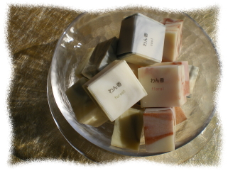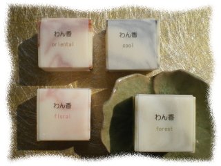 わん香・お試しSet 香りで確かめてみてください。 うちの子は今、どの香りが好きなのか? ワンちゃんには香りの好みがありますし、またその時々の状態で好きな(必要とする)香 りが変化したりするものです。アロマセラピーとはある意味、リトマス試験紙のようにその 時の心理や体調のシグナルを教えてくれます。 小さな4種類の石鹸は、お散歩後の足用シャンプーに、お友達ワンコへのプレゼントに と、使い道いろいろ。楽しみながらいろいろな香り体験ができますね。 そして、季節や年齢でも変化する体調や情動も香りを活用して上手にお付き合いしてあ げられる飼い主さんでいて欲しいと思うのです。 SOAP \1,600(本体価格)+税 基本のわん香mini4個 約90g |